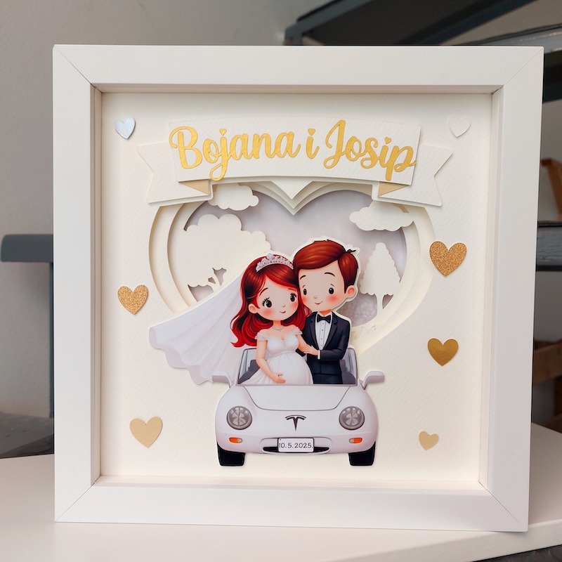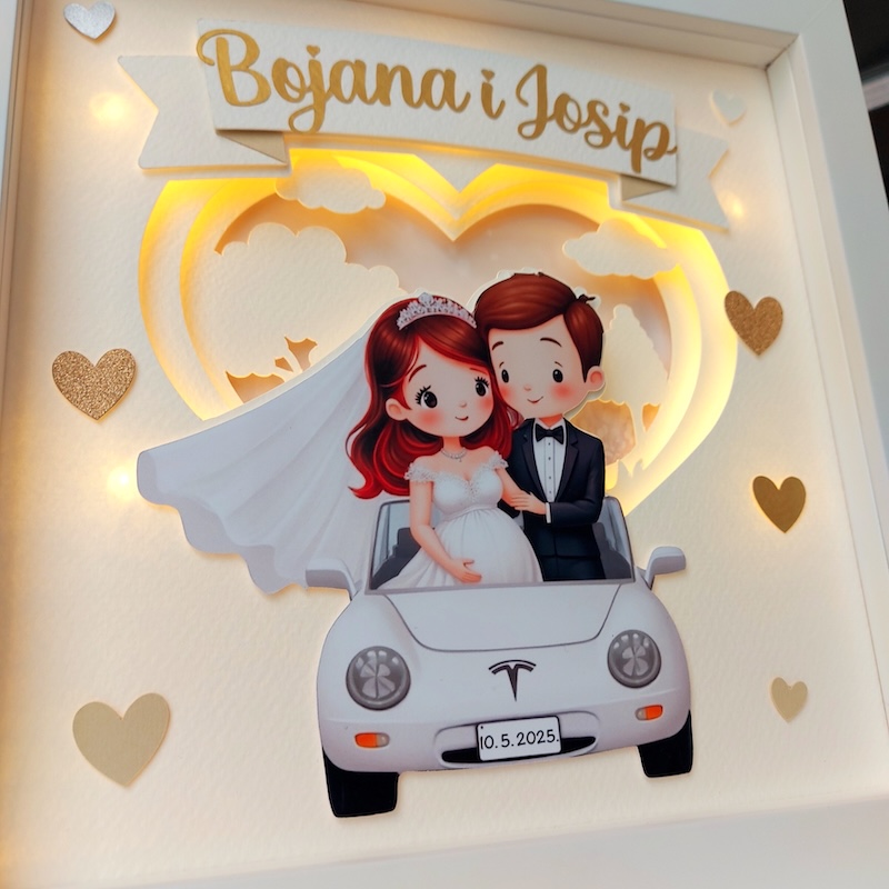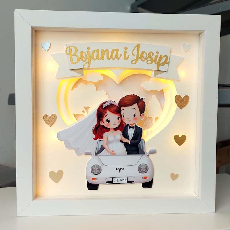 Malo sam zamahnula svojim čarobnim štapićem i nastala je ova čarolija. Tražiš li i ti sasvim poseban poklon kojim ćeš sigurno oduševiti mladi par, naruči odmah i donesi osmijeh na lice svojim najmilijima. Ako želiš, u okvir možeš dodati i prigodnu poruku.